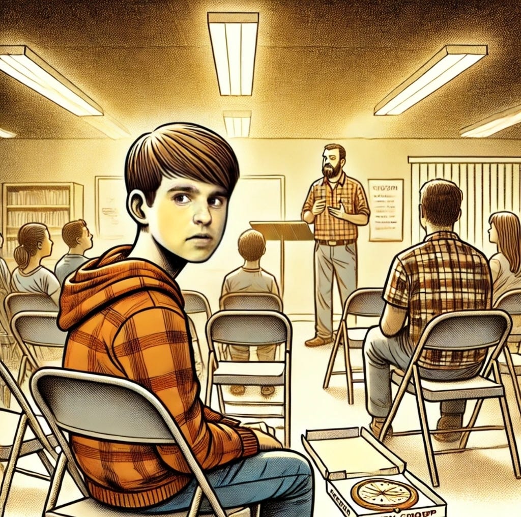 The meeting was held in the church basement, where folding chairs were set up in a circle. The atmosphere was warm and inviting. A guitar leaned against one wall, and a small group of teenagers my age chatted while a youth pastor handed out slices of pepperoni pizza. For the first half-hour, we played icebreakers and laughed together, and I started to feel at ease.